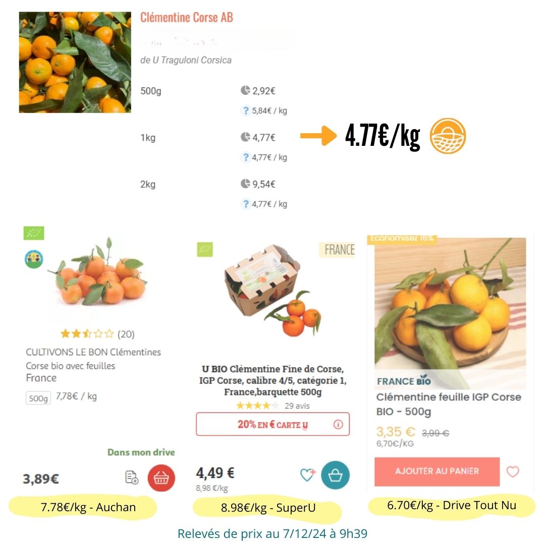 clémentine corse bio Comparateur de prix du groupement d’achat fermier pour la clémentine de Corse Partager :Tweet Cliquer pour imprimer(ouvre dans une nouvelle fenêtre) Imprimer Plus Cliquer pour envoyer un lien par e-mail à un ami(ouvre dans une nouvelle fenêtre) E-mail